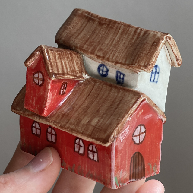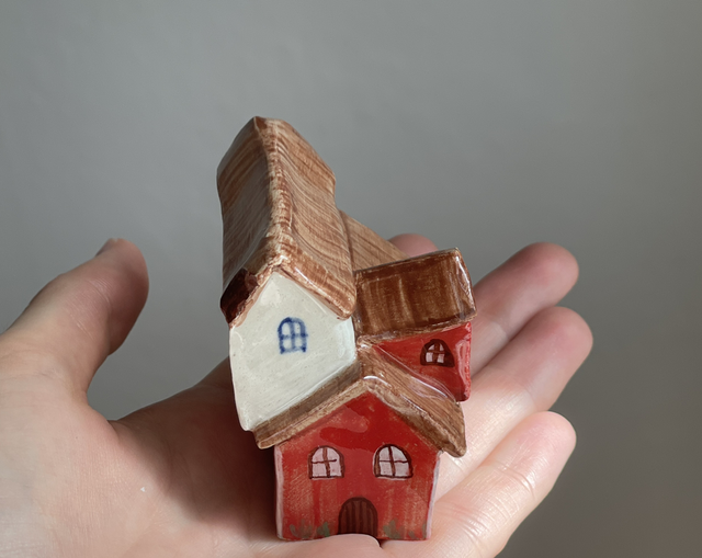 Ett litet dekorativt hus i stengods